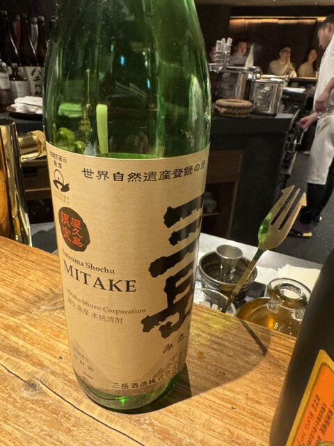 飲み物はまずはビールから始まり、焼酎を店長セレクトで色々と出してもらい、水割りで飲んで行きます。妻はシャンパン中心に飲んでいました。