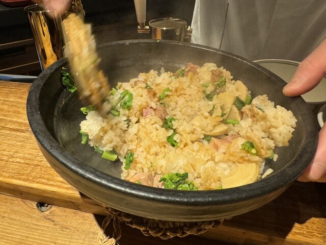 土鍋ご飯は最初にオーダーしても時間が掛かるため、最後のお腹いっぱいの頃に到着します。