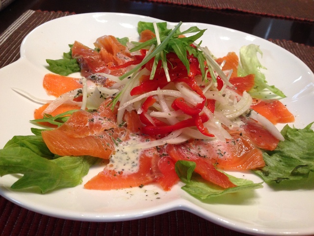 サーモンマリネを食べられた