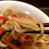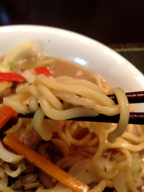 麺はつけ麺用の太麺を硬めに茹でて、一度冷水で洗い