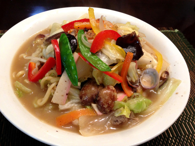 多めの野菜には彩りを考えて、絹さや・赤と黄色のパプリカ・木耳