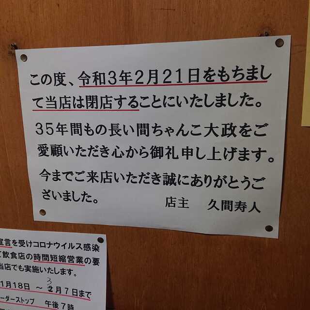 子供のころから来ていたお店ですので残念ですが、いろいろな諸事情がありしょうがないですね。