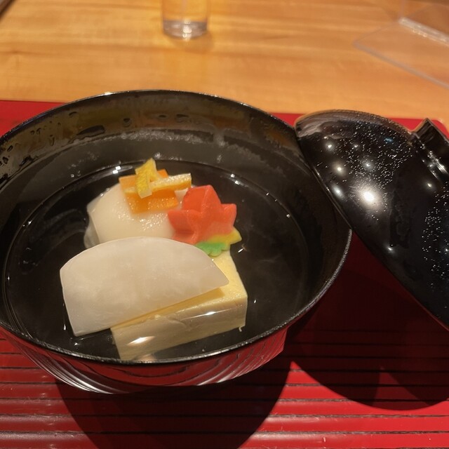 むかご真丈と玉子豆腐のお椀