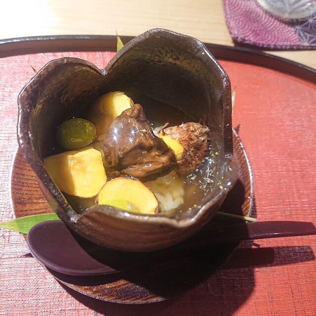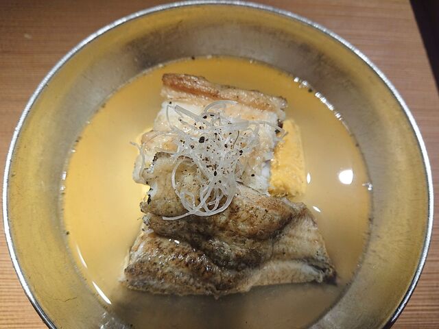 スッポンの上品な出汁がよく出ています。スッポンの身は出汁巻卵で巻かれているのかな?