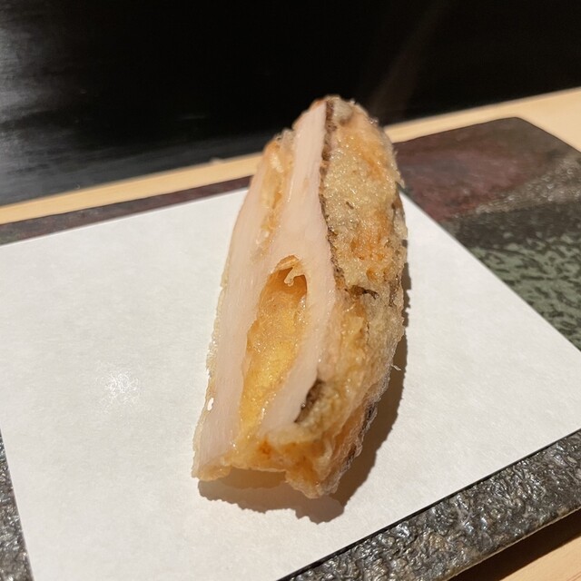 低温でじっくり揚げているのでしょうか。本来持っている甘さを100%引き出しているように感じました。これ以上火を入れたら柔らかくなり過ぎる、ギリギリの絶妙な火入れです。