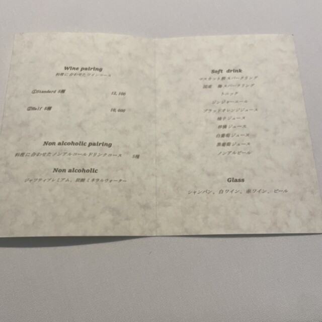 この日はネット予約限定コースでしょうか。ドリンク2杯付のランチコース(19800円)となります。