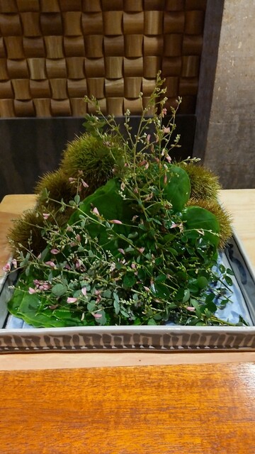 八寸。大分の青いいがぐり。このわた蒸し。ボタン海老とヤリイカのキャビア乗せ。若ほうれん草のじく。百合根の団子。このわた蒸しでお酒が進む。