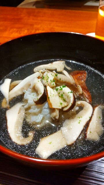 焼物。大阪湾のスズキ。蓼酢お粥ソース。