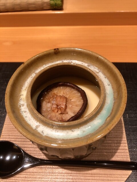 その後の茶碗蒸しは半生のバチコが中に入っていてバチコの味が広がっています。半生のバチコは初めて食べましたが通常のものより遥かに美味しいです。そして、上には香り高い焼き椎茸か添えられていますがこの椎茸が味が濃くてまた美味い!終盤戦で茶碗蒸し?と思いましたが正にメインに相応しい逸品でした。