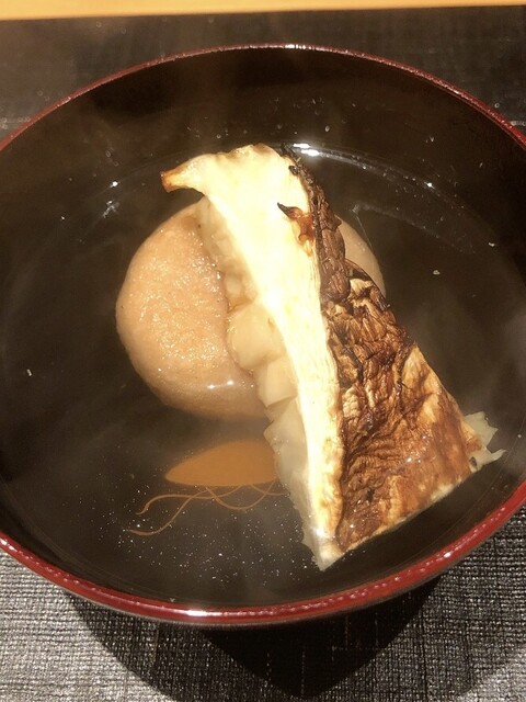 ノドグロの焼き物は半身を丸めて炭火でじっくり焼いてくれます。大将曰くノドグロと聞いて喜んではダメ、これを焼くのは実は本当に難しいとのこと。大将はこの焼き方を極めていて完璧な仕上がり。このままかぶりついて!と言われるままにかぶりつくと皮目は香ばしく身はフワッとジューシーで上質な脂が溢れて出てきます。今まで食べたノドグロの中で一番美味しかったです。
