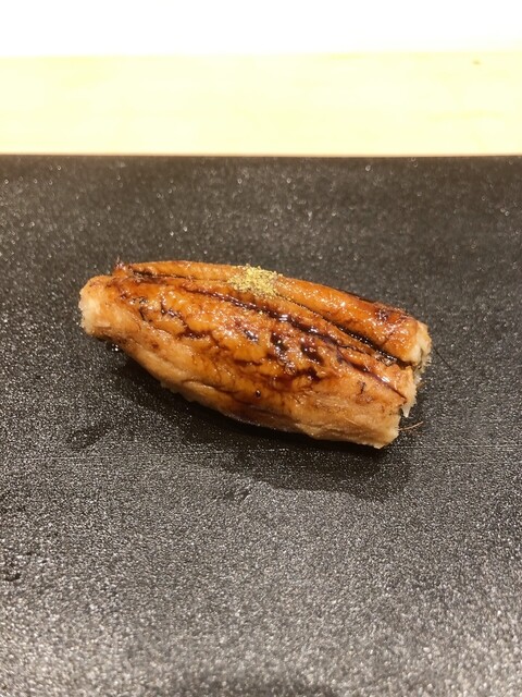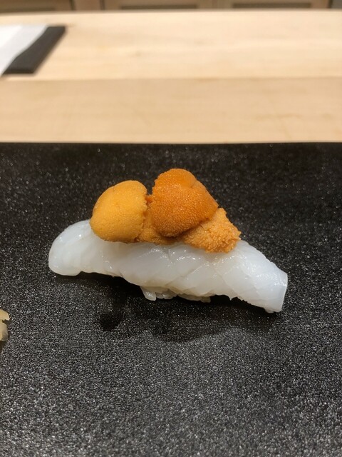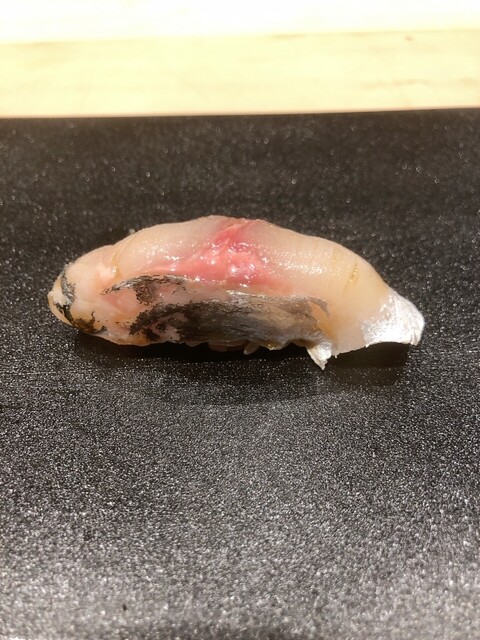 本当に全てが美味しかったのですが、中でも真鯛の握りがとても印象に残りました。敢えて旨みのある皮を残し、その皮目を炙ることで更に旨みを引き出しています。これだけ旨味の濃い真鯛はなかなか食べることができません。天寿しの真鯛のカマの炙り(私が生涯で一番美味いと思う寿司)に匹敵するレベルでした。