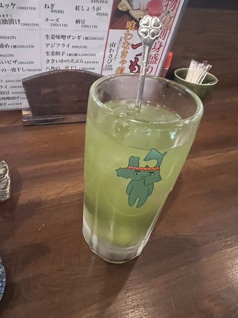 そして皆が始めにオーダーする「いつもの」(550円)5種類のお刺身が一切れづつ。お得なお刺身盛り合わせ(^^)。香ばし茶割りを飲みつつ次は、貝焼き味噌(858円)やおでん出汁の卵焼きを食べて退店(^^)
