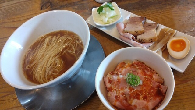 『濃厚鰹出汁 追鰹そば+まかない丼(ピリ辛丼)@らぁ麺 めん奏心《静岡県島田市金谷栄町』