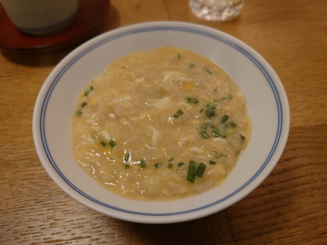 雑炊は、玉子が加わって、味噌ラーメンのスープより濃厚で、これまた美味いです。