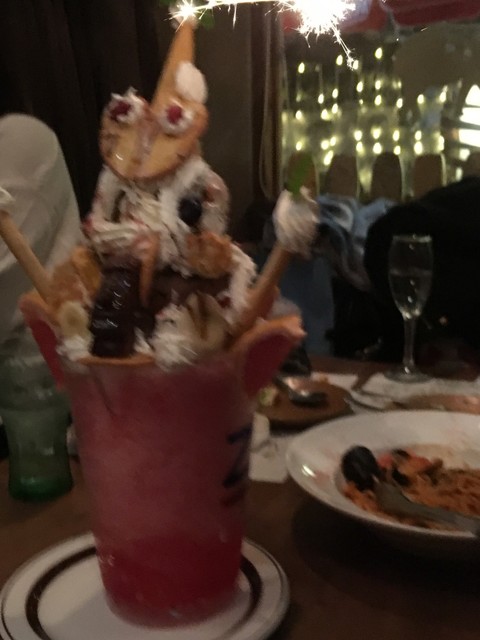 最後に、デザートが頼めるんだけれど、どでかいパフェか、アイス盛り合わせの二択。