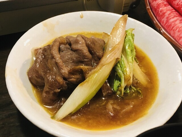 めーーーーーーーーーーーーーーっちゃ大きく薄く切られたお肉はまさに職人芸で、それを店員さんがお野菜と一緒に目の前で調理してくれるんだけれど、贅沢がすぎる……!