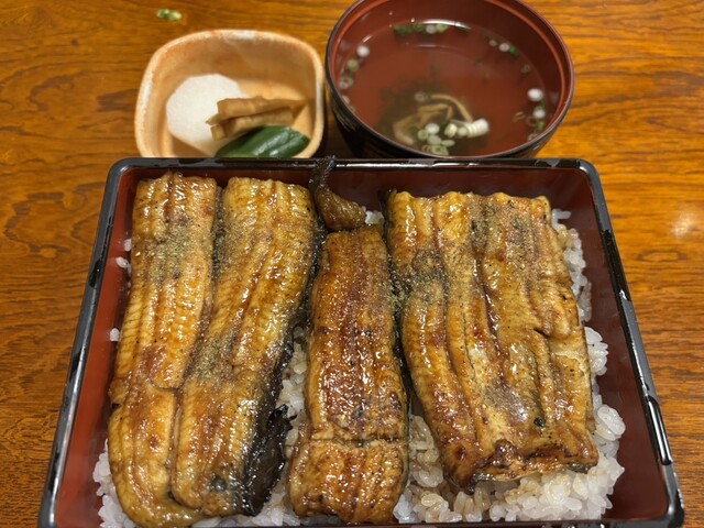 コスパのよい鰻が食べられると聞いてやってきた。やはり食べるなら特上うな重でしょ。10分くらいで着丼。蓋を開けてご対面!綺麗に焼きあがり、タレがいい感じに艶をだしており、いかにも美味しそうなうな重に思わずゴクリ。ひと口食べてみると、ふわっふわのうなぎの美味しさが口にひろがる〜。あー、しあわせな瞬間。タレもちょうどいい甘さで、うなぎ一口でご飯がいくらでも食べられそう笑 小ネギのたくさん入った肝吸いもさっぱりした味でいい。お漬物だけでなく、キャベツの千切りサラダとミニトマトまでついてるのが嬉しい。これで3,300円(昨今の物価高騰により3,000円から値上げしたとの貼り紙あり)なら大満足!ちょっと行きにくい、駅から離れたところにあるけれど、お刺身やおつまみなども充実しているようなので次は飲みにくるのもいいな。ごちそうさまでした。
