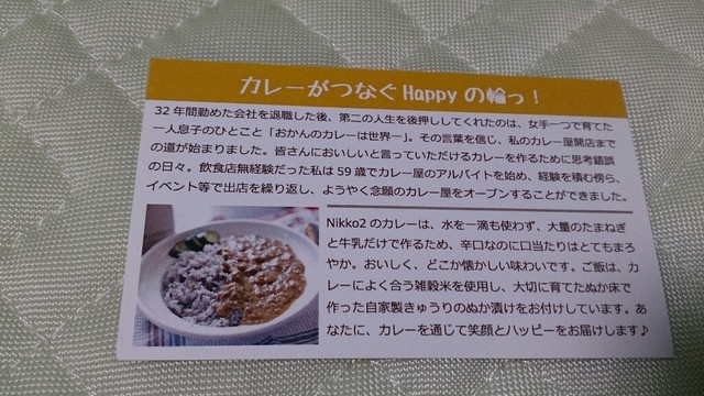 つけあわせはきゅうりのぬか漬けです。こちらも手作りでカレーにばっちり合う仕上がりです。