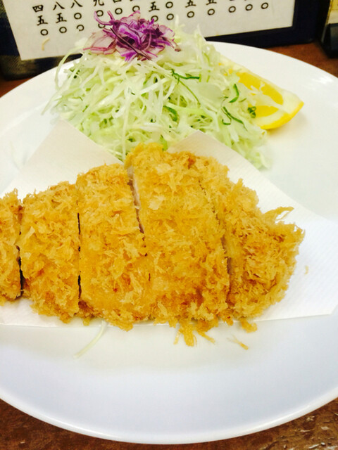 お皿には無駄なものは何も無く、トンカツにキャベツの千切り、レモン。