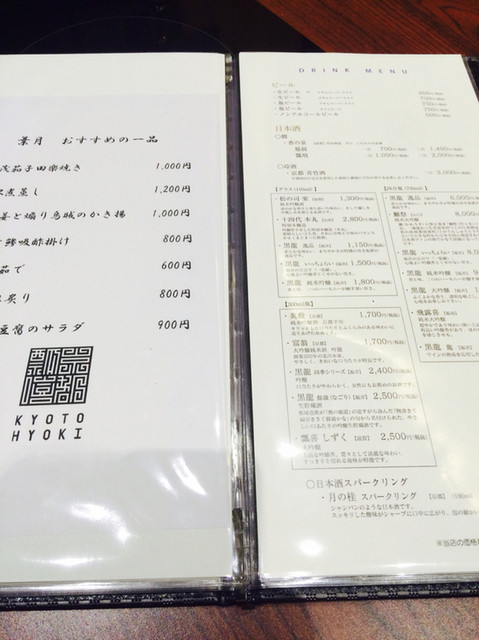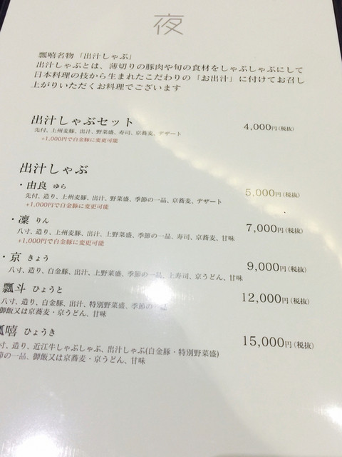 もうすでにテーブルにはテーブルセットがされていて、予約した「瓢斗」というコースのお品書きが置かれていました。