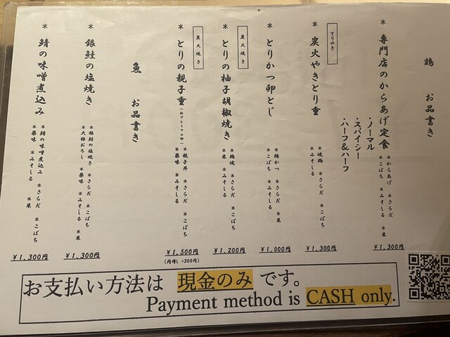 支払いは、現金のみ。