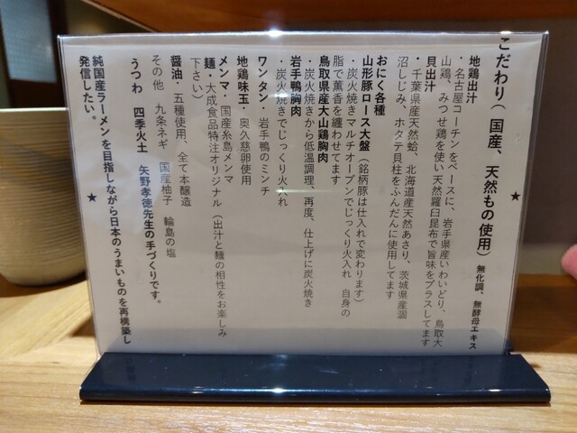 運良くTable Checkで予約が取れたので訪問しました。今回も特製塩らぁめんを頂きました。鶏と魚介ベースの出汁の旨味と塩ダレの風味が良い。そのスープにあった細ストレート麺に3種類の焼豚、雲呑、味玉と贅沢なラーメン。しかも全ての食材が国産と本当に贅沢な1杯でした。