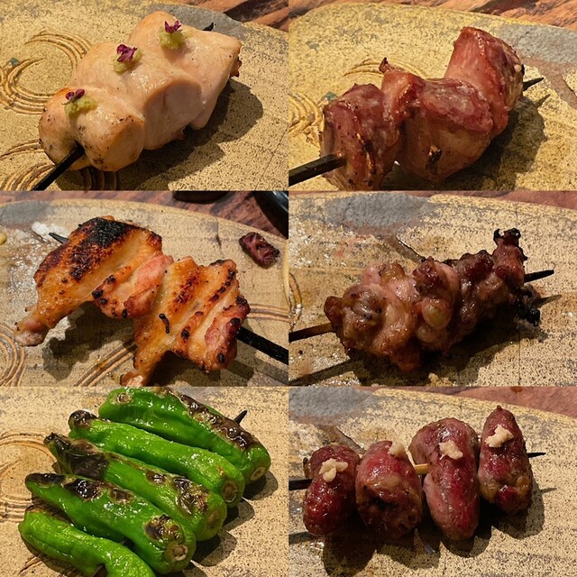 焼き鳥をひと串ずつ提供し、コース料理のように味わえる。