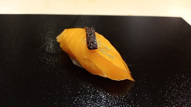 酸味も程よく肉厚で濃厚な味の真子の握り。