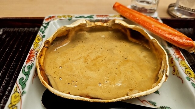 甲羅に残った蟹みそに日本酒や味噌等を混ぜて焼いたもの。
