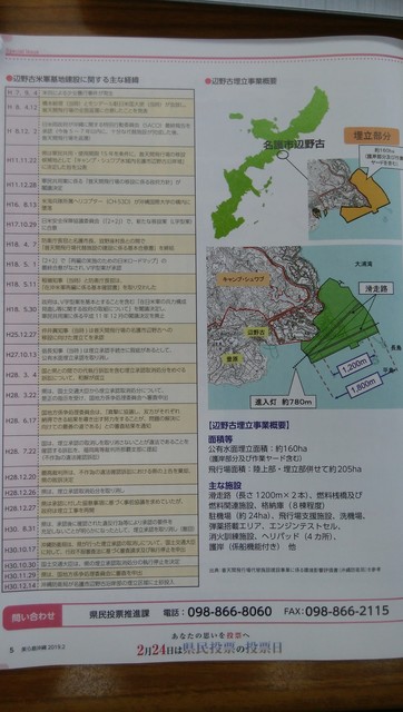 写真に見づらいとは思いますが・・・辺野古米軍基地事業の経緯