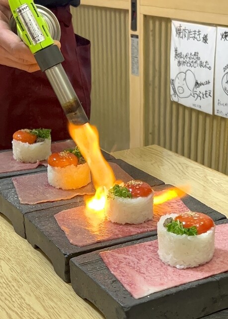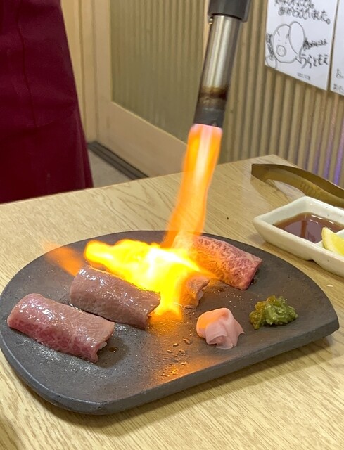A5ランク佐賀牛ハネシタを使った大トロ炙り寿司はお席でスタッフさんが炙って下さいます(^^)