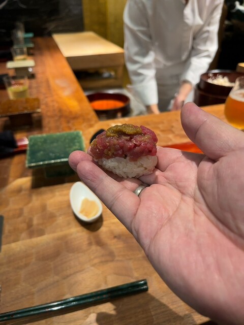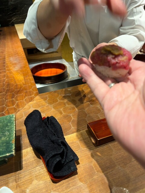 そして出す鮨は、少し温めて提供するのが初音鮨流だそうです。この温度が1番味がわかる温度で、冷たすぎると味が分かりにくいから。