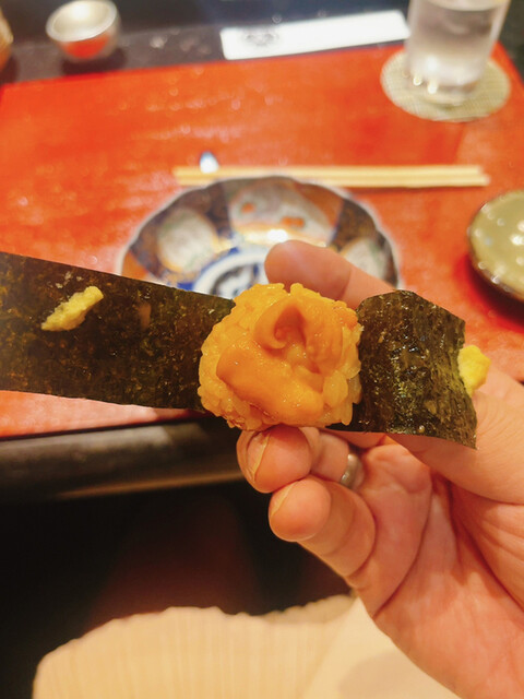 ●ウニ オホーツクのウニ 甘ーい!美味しい〜。ご飯もウニがあえてあってとてもいい!