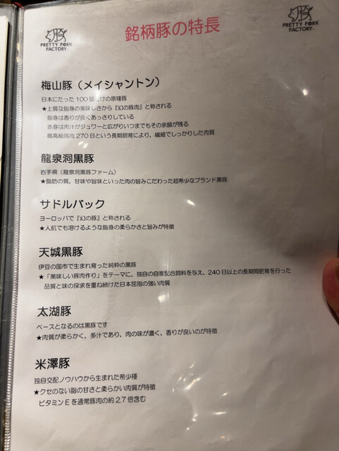 ブランドポークがたくさんありますが、部位を選んで頼みます。