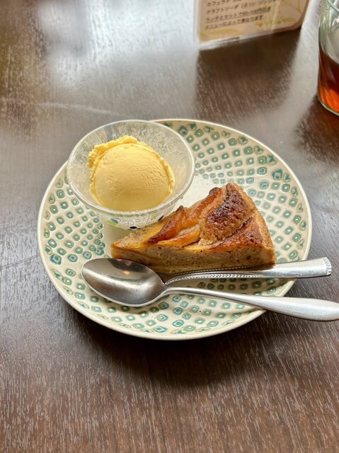 ランチ:ビーフシチューエッグドリア、りんごのタルト