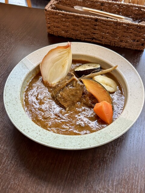 ビーフシチューエッグドリアも定期的にメニューに載るこの店の名物料理の一つ。一般的なドリアのイメージはホワイトソースやトマトソースでごはんに味つけしてチーズをかけてく焼いたグラタンに似た料理だが、この店のドリアはクリームやトマトの味は一切感じない。その代わりになるのがビーフシチューなのだが、シチューと言っても汁気はほとんど無い。シチュー味でしっかり煮込まれた牛肉がたっぷり入ったビーフピラフをチーズをかけて焼いた、そんな感じである。このシチュー味のビーフが非常に美味しい!付け合わせの焼いた根菜と交互に頬張ると思いのほかクドさは無くあっさり食べられる。
