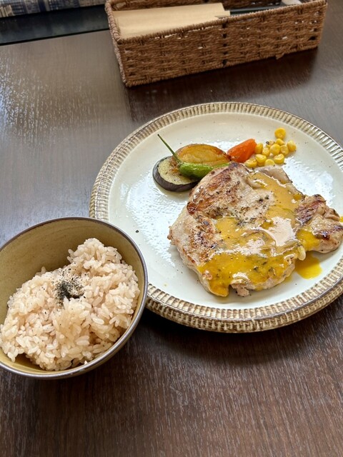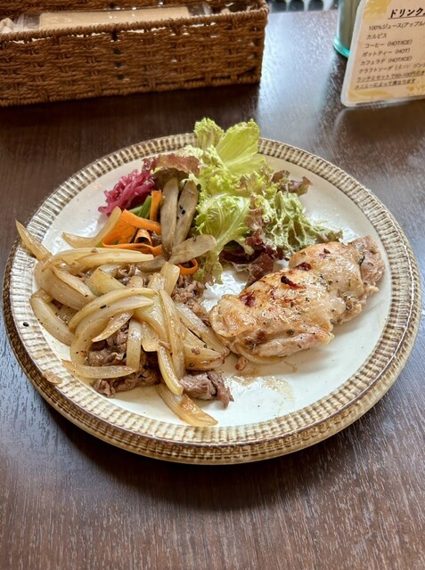 週替りランチ:チキンステーキ&牛焼肉、チーズタルト