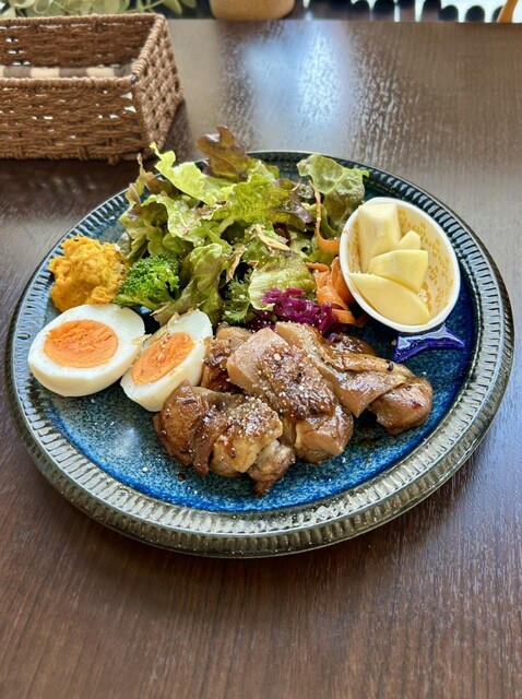 ランチ:国産若鶏もも肉のチキン南蛮、りんごと紅茶のベイクドケーキ