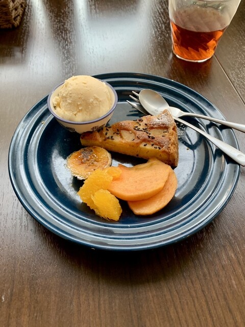 奥さんお手製のタルトは実に美味!バニラアイスが甘過ぎるので、「のせ」ではなく「添え」にしたそうだ。正解だと思う。