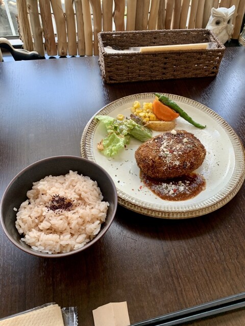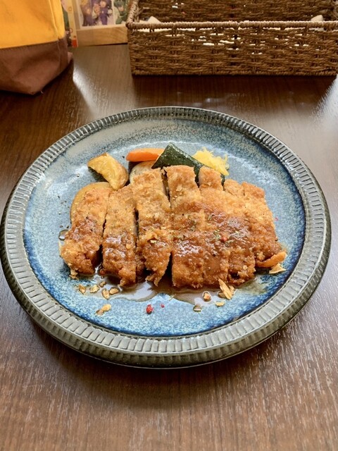 メンチカツは予想より厚みがあり、衣も厚めでしっかりと硬さがある。ハンバーグが売りの店だけあって、箸で切り分けると肉汁が溢れ出る。一切れ口に頬張ると肉の旨みが広がる。香辛料をアクセントにした甘めのソースとの相性も抜群で、たいへん美味しい!