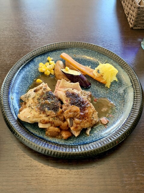 ランチ:国産若鶏もも肉のコンフィ 梅ソース添え(¥1,180) やはり抜群に美味しい!鶏肉自体の味・食感も良いが、梅ソースとの相性が素晴らしい。是非レギュラーメニューに加えてほしい。