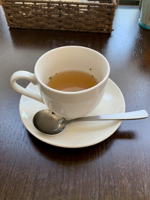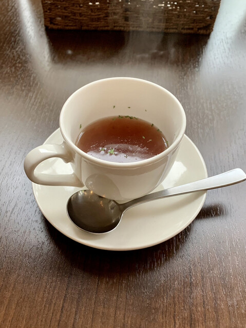 まずは最初に来たのが前回同様にカップに入ったコンソメスープである。僕の嗜好から言うとちょっと塩っ気が強過ぎる感は否めないのだが、しっかりした味のスープだ。もう少しだけ当たりが柔らかくなればありがたいのだが、通い続けるうちにシェフに意見できるようになるかもしれない。