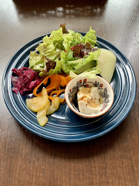 いつものランチサラダ 毎回少しずつ新しい物が加わっている。今日はピリ辛の瓜?が入っていた。この店のサラダはいつでも間違いなく美味しい!