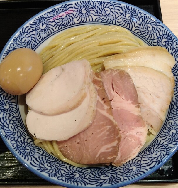 チャーシュー濃厚魚介つけめん大盛り燻製半熟煮玉子トッピング