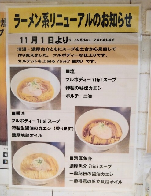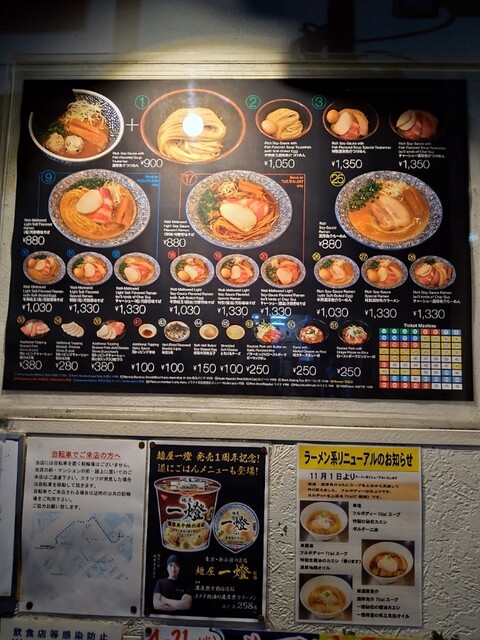 本日は、『一燈』さんで唯一食べていなかった〘(塩)芳醇香味そば¥880→¥500〙と〘濃厚魚介つけめん並¥900→¥500〙をチョイス。