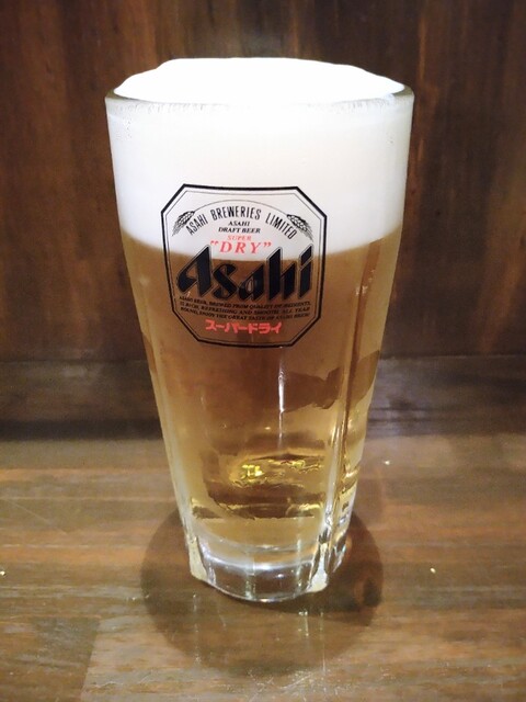 ドリンクは〘生ビール中¥600〙をチョイス。
