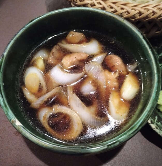 細かく切られた鴨肉とネギのつけ汁。