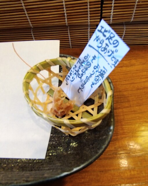 ①エビ頭天ぷらとエビ足からあげ(1個目)