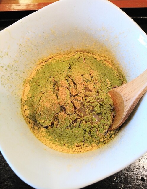 ①柔らかいお餅に、きなこ・抹茶・ゴマが掛かった濃厚な味。