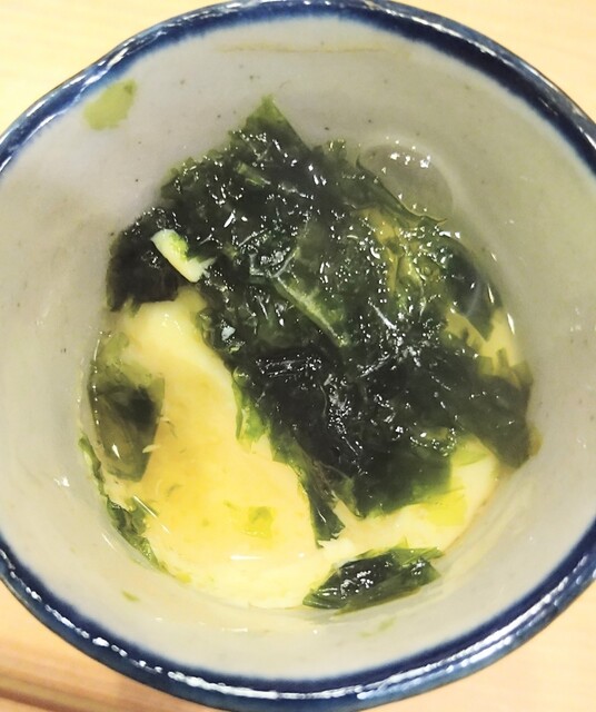 茶碗蒸しの上に、大量のあおさを乗せ、餡をかけてある。